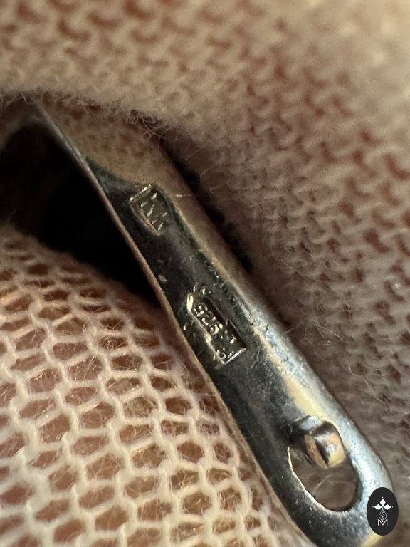 Latvijos Proves biuro ženklas. Akmens spalva - karamelės ruda (spalva keičiasi priklausomai nuo apšvietimo).