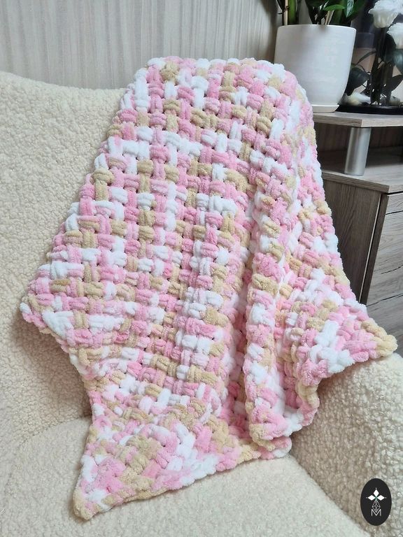 Beebitekk. Soe ja hubane. Suurus: 110*85. Koostis: vill-20%, akrüül-80%.