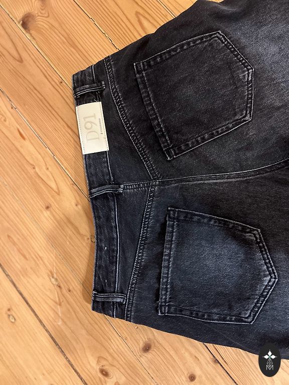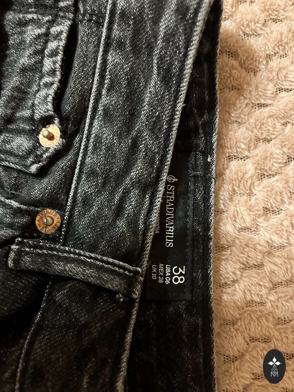 Ilgis 91 cm, vidinė siūlė 62 cm, juosmens 38 cm, aukštas juosmuo. Elastingos