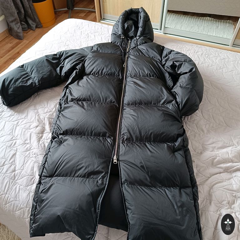 Dūnu virsjaka skaistā šokolādes tonī, ar dabīgo apkakli(to par nopogāt nost). Ir kabatiņas. Norādītais izmērs S, bet derēs arī M.