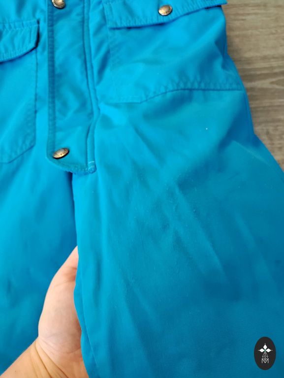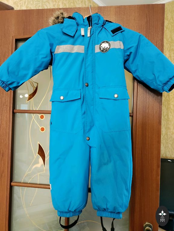 На куртке заменена молния, есть небольшие дефекты от использования, но она очень теплая и идеально подходит для детского сада или игр на горке.