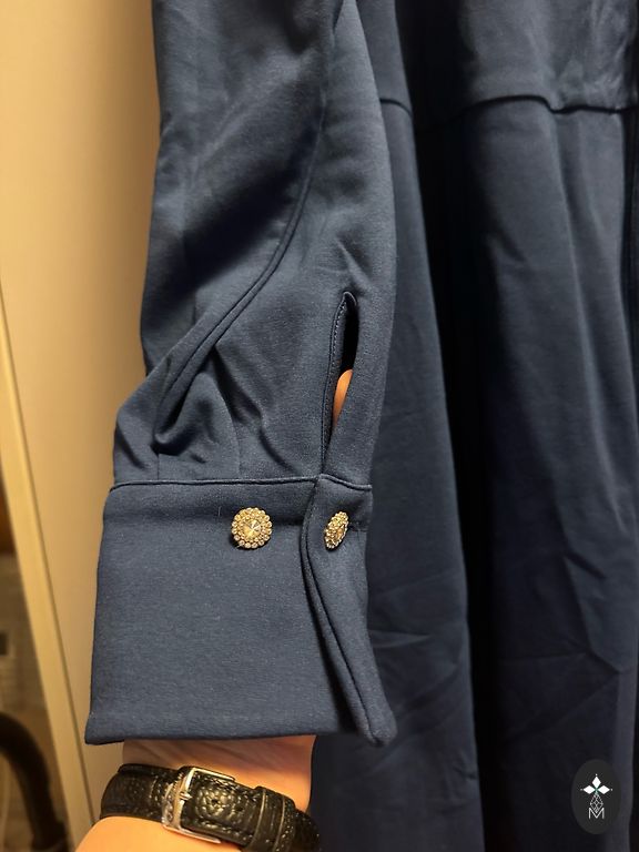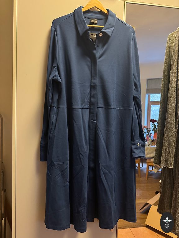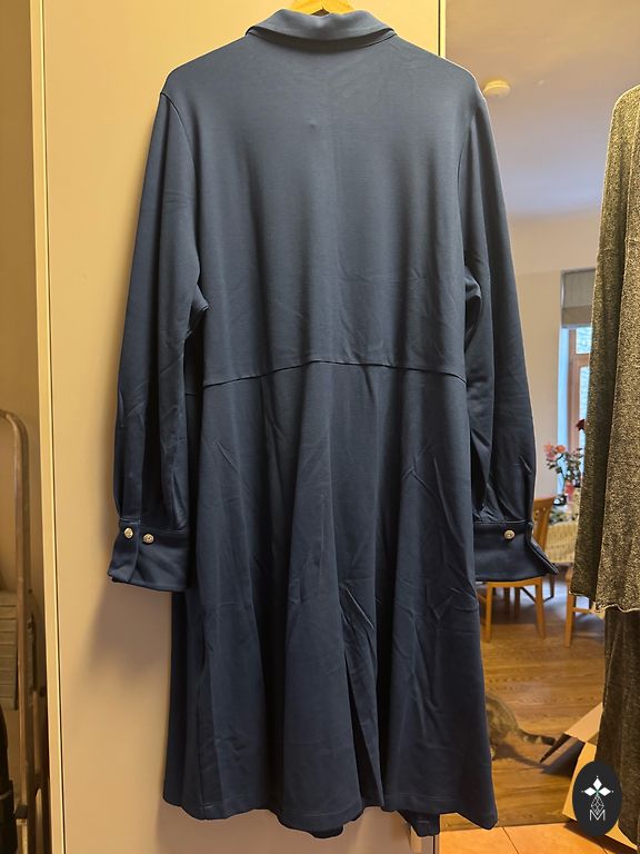 Storos trikotažas (punto di Roma) suknelė, labai patogi su gražiu A linijos siluetu, kišenės šoninėse siūlėse, apykaklė, priekyje po iškirptės papildomos klostės. Ulla Popken šį modelį/siluetą kiekvieną sezoną išleidžia įvairiais raštais, jis yra labai populiarus! Krūtinė 60x2=120cm Juosmuo 57x2=114cm Klubai 70x2=140cm Ilgis 118cm.
