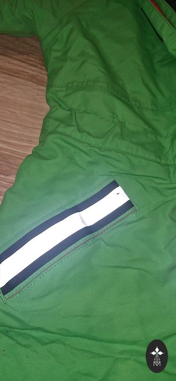 Very beautiful color. In excellent condition, worn only a few times, but there are some signs of use because, unfortunately, the fabric was slightly scratched on the backside while sliding down a children's slide. But otherwise, there are no defects, the front looks like new.