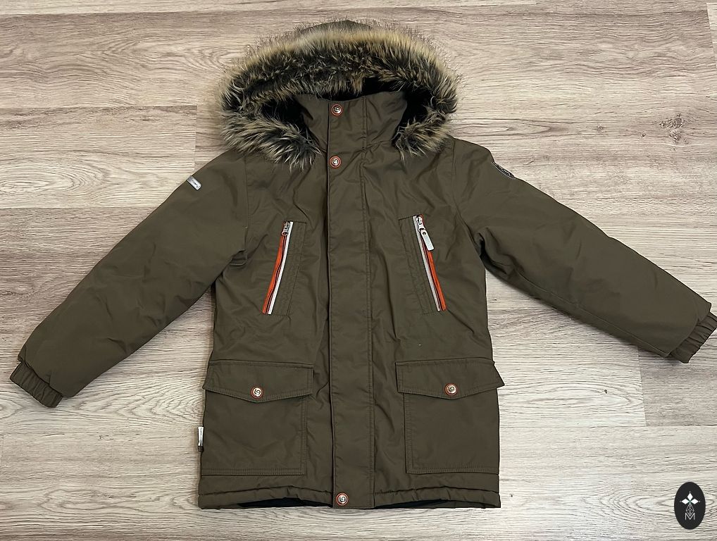 140 dydžio striukė berniukams. Nėra labai stora, pūkuota, bet šilta (bent jau sūnus nesiskundė, kad būtų šalta)