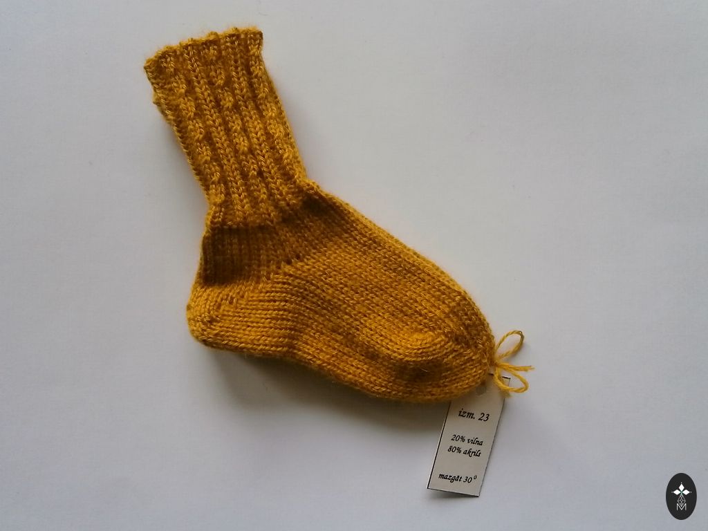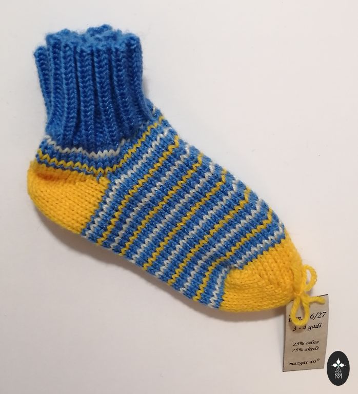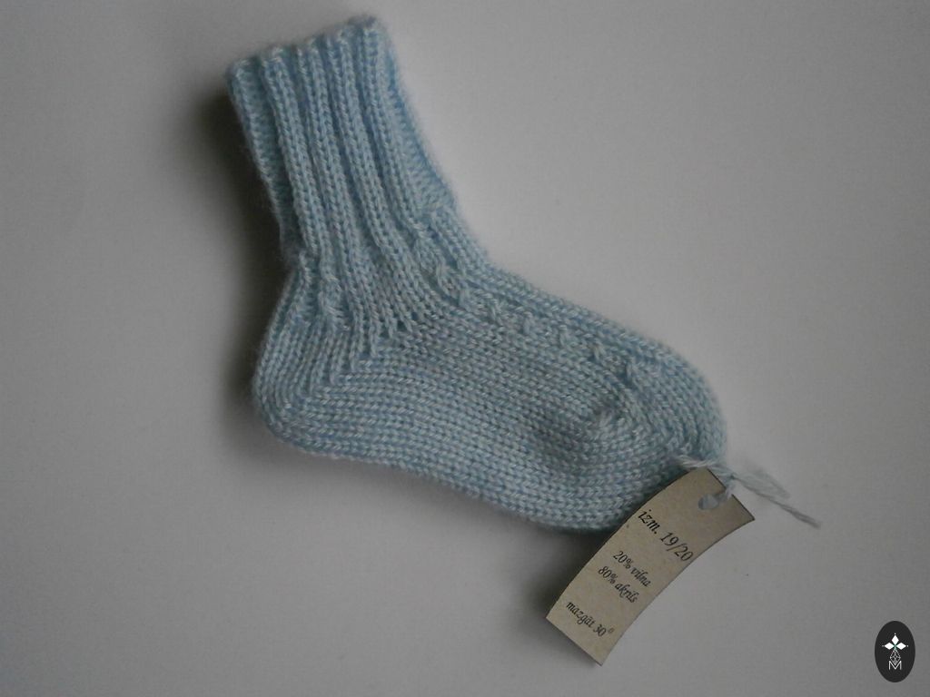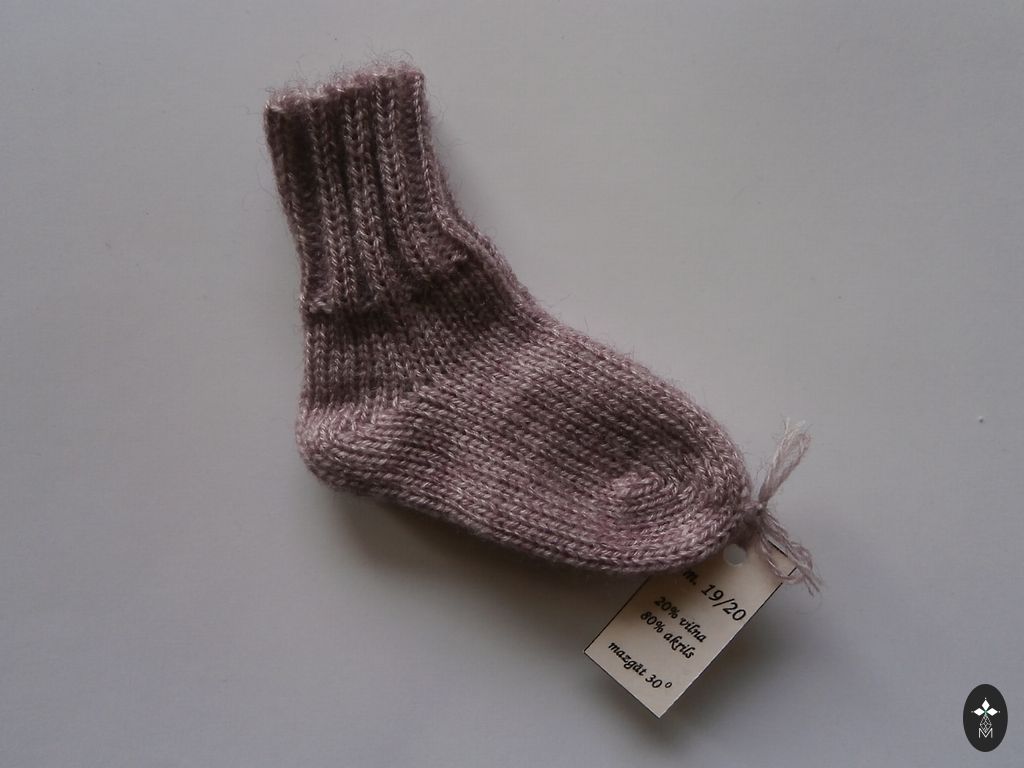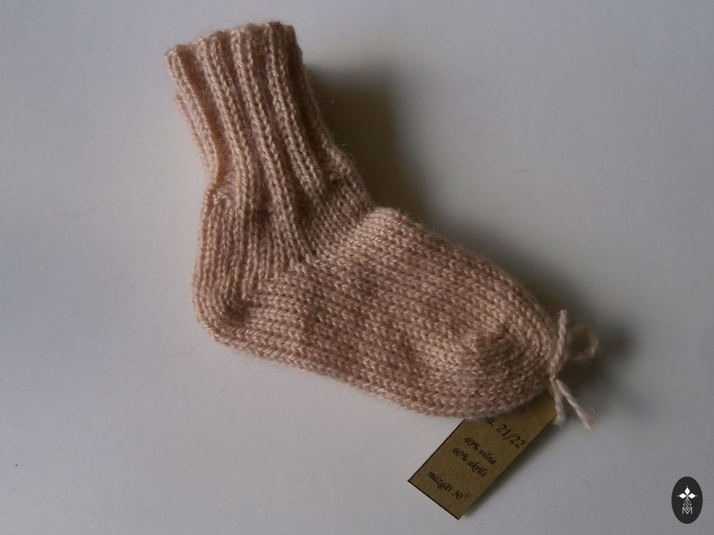 Kootud beebisokid. Sokkide talla pikkus ~ 9-9,5 cm. Lõng: Alize angora gold, 20% vill, 80% akrüül. Sokid on pehmed ja elastsed.