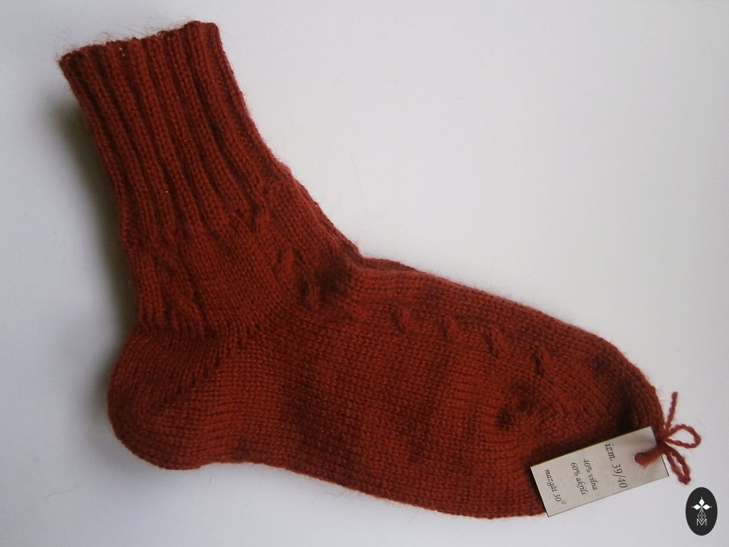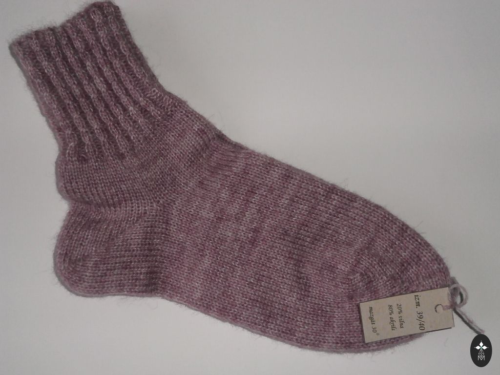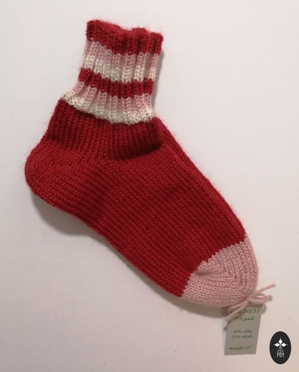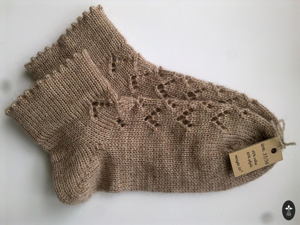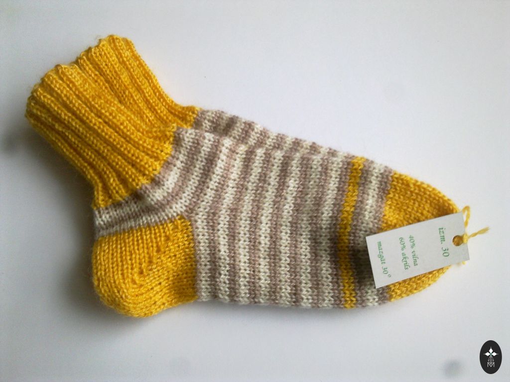 Kootud beebisokid. Sokkide talla pikkus ~ 9-9,5 cm. Lõng: Alize angora gold, 20% vill, 80% akrüül. Sokid on pehmed ja elastsed.