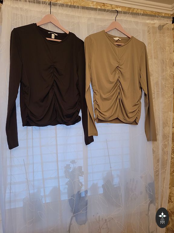 Selling two new crop tops with long sleeves, very pleasant and comfortable material, suitable for both XS and S sizes.