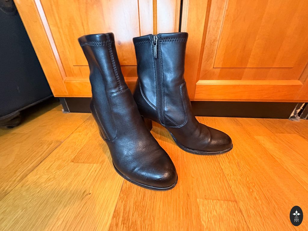 Keletą kartų dėvėti, geros būklės. Deja, nežinau prekių ženklo ir medžiagos.