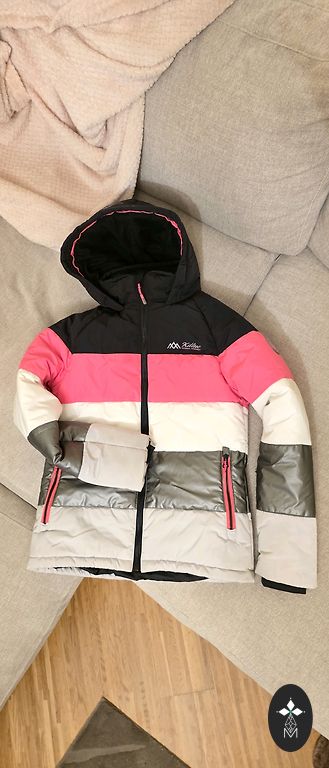 Gamintojas nurodo 90 dydį, dukrai tiko nuo 86 iki 92 dydžio, įskaitant. Trūkumas - užtrauktukas šiek tiek pažeidė vidinį audinį - paskutinė nuotrauka, funkcionalumo tai niekaip neįtakoja, užsegant striukę nesimato.