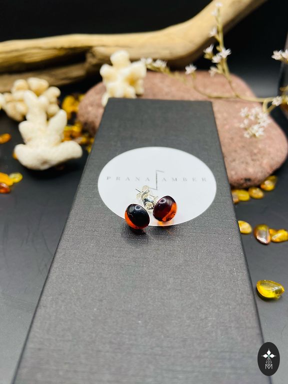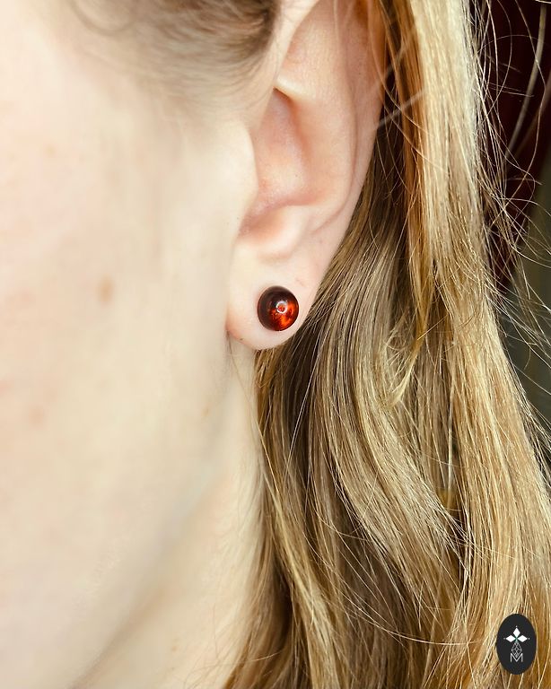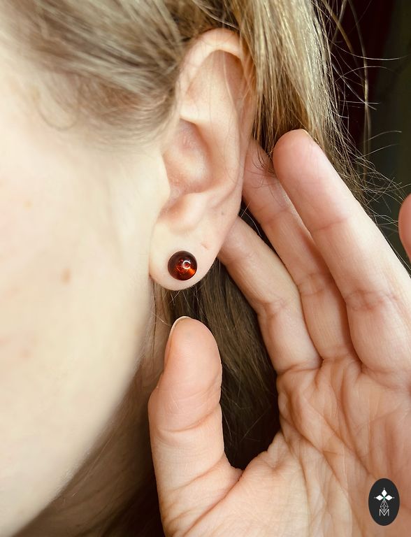 Серьги в форме полумесяца в прозрачном коньячном цвете с настоящими серебряными штифтами.