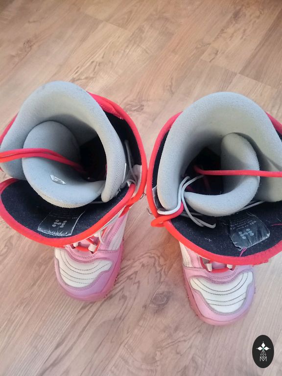Использовались немного, при обучении катанию на коньках появились небольшие царапины. Передние зубцы подпилены, чтобы ребенку было легче кататься. Размер 34.5