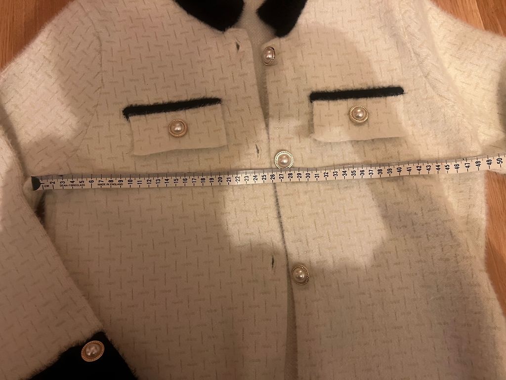 The jacket hasn't been worn, everything is visible in the photos, I removed the paper tags.