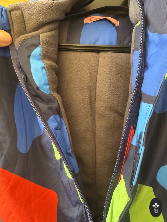 Подойдет для размера L/XL. Новый с биркой. Застежка на молнии и сверху застежка на магнитах. Большой капюшон. Теплый, удобный для движений. Интересная игра цветов (в зависимости от освещения - черный/темно-серый).