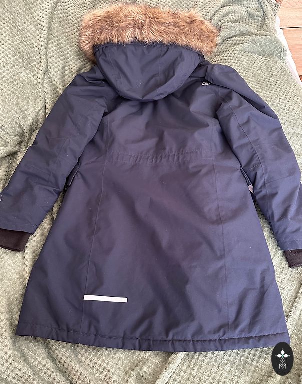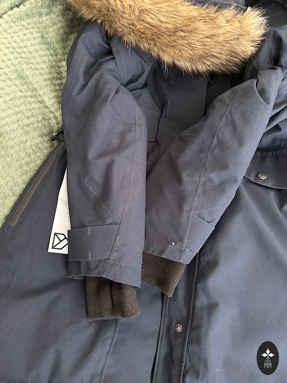 Size M • adjustable waist • high collar • warm hood • faux fur lining • side pockets • zipper missing one tooth (see 3rd and 5th picture), but it does not affect functionality, the zipper works perfectly