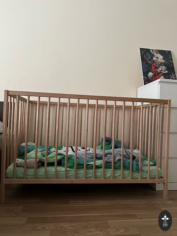 Voodi kookosmadratsiga. Madrats ostetud uuena, kasutanud üks laps, seetõttu on mõni plekk. Voodil on reguleeritavad kõrgused. Ise väljaviimine Tīraine'ist, Mārupes rajoonis.