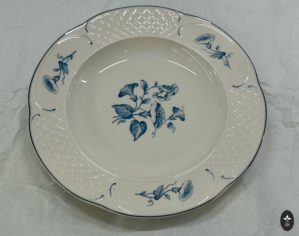 "Microwave Safe", leidžianti jį patogiai naudoti šiuolaikinėje virtuvėje, išlaikant senosios Anglijos estetiką.