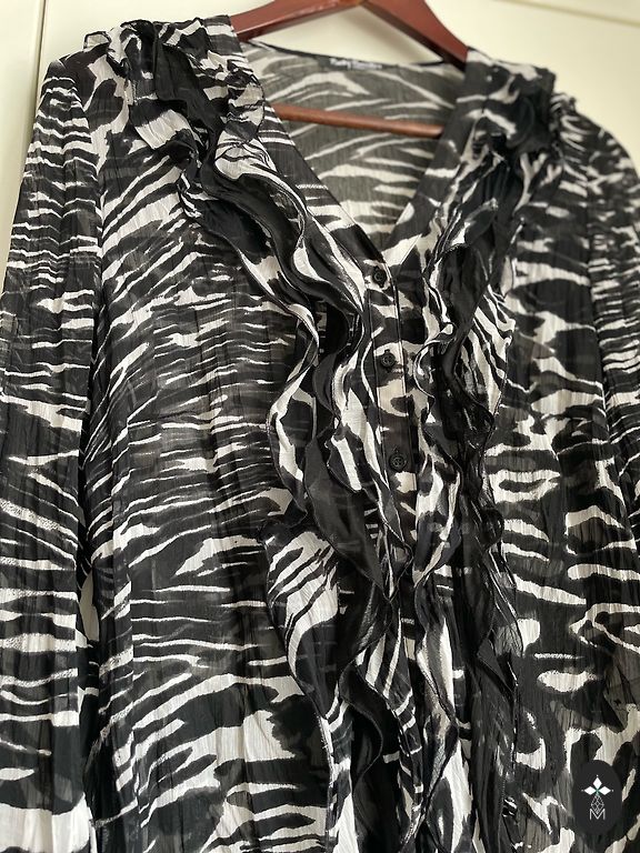 Из очень приятной ткани, в составе вискоза, полиэстер и эластан (ярлык отрезан)