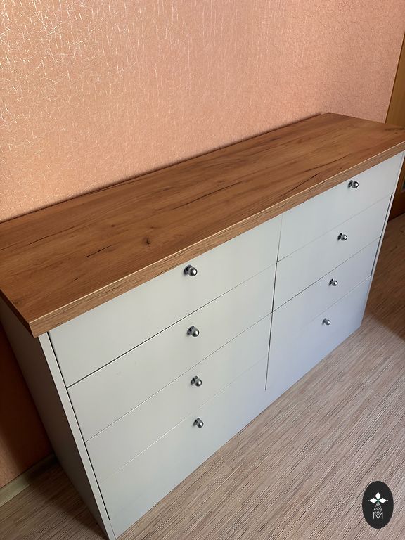 Parduodu vaikų komodą su giliomis ir talpiomis stalčiais. Apatinis komodos stalčius yra ant ratukų. Pridėsiu rankenų žiedus - spalvą galima keisti. Ant viršutinio paviršiaus kažkas išsiliejo - atrodo kaip klijai. Nuotraukoje viską galima matyti. Komoda yra vokiško gamybos.