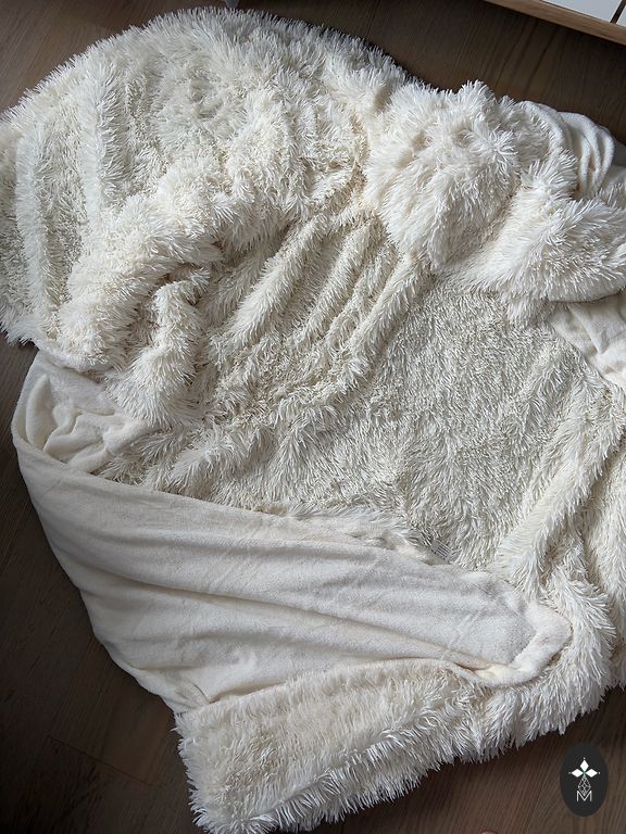 Dvipusis vilnos pledas/lovatiesis 150cmx200cm iš labai minkšto vilnos (rombų raštas). Priekis yra šviesiai smėlio spalvos, kita pusė balta. Galima skalbti skalbimo mašinoje. Pagaminta Kinijoje. Siuntimas neįtrauktas į kainą.