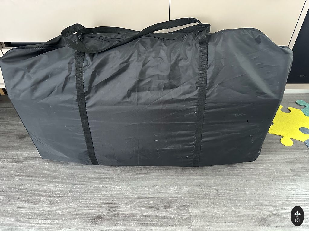 -Aprīkots ar riteņiem un īpaši biezu, ērtu matraci.
