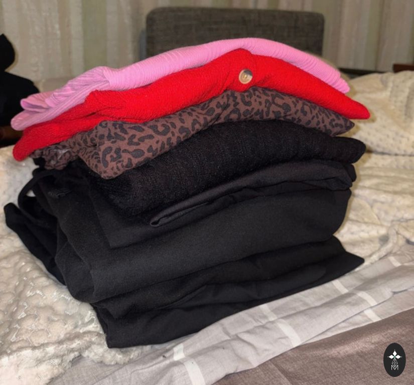 Į XL dydį, tiks ir nedideliam XXL. Kelnės modernios, šiltos, juosmens su guma. Megztinis taip pat gana šiltas.