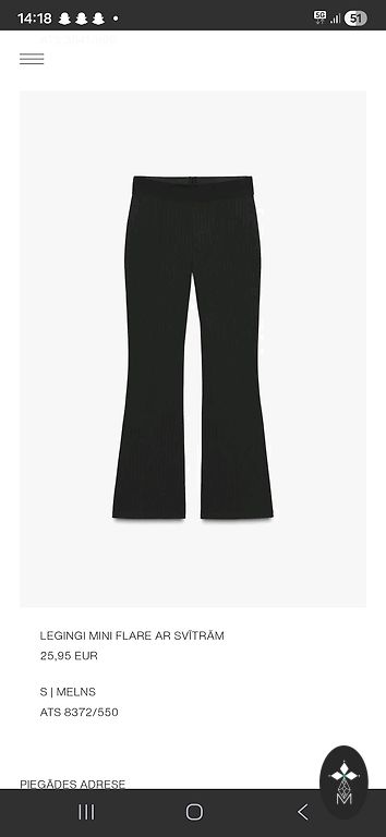 Jauni, Melni Gluda Auduma Legingi PUSH UP STRIP. S izm.
