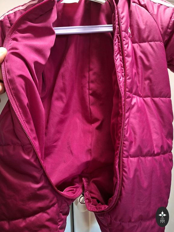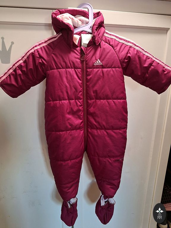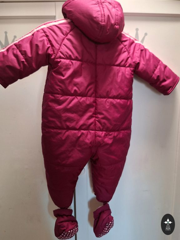 Pink size 62. Sleeves and legs fold over. Worn in early spring, spring. Dull purple size 68, slightly thinner than pink. Worn throughout autumn and the baby was warm.