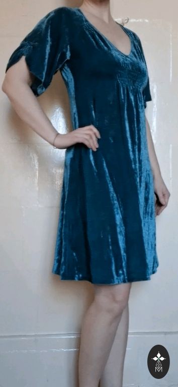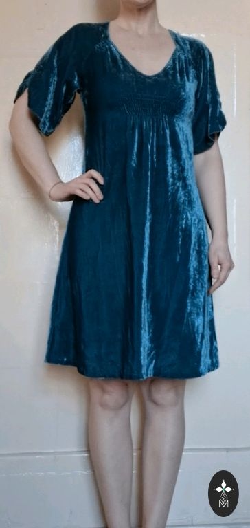 Lace, with underskirt, comfortable. Side zipper. Small M or S, the photo shows the length, on me at 1.70m above the knee.