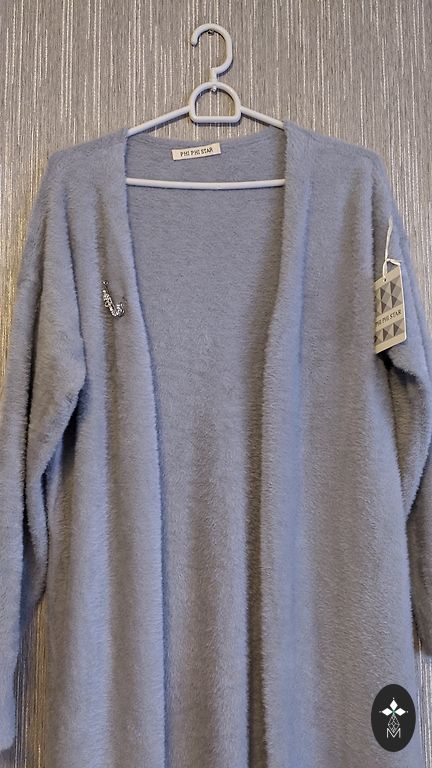 Новый, толстый свитер. Купил на XL, но хорошо будет на L или M. Приобретен за 28.00 на IT прямом эфире. Цвет в жизни немного светлее, мягче сиреневый. Грудь 106, длина 60. Дополнительная доставка. 51 полиамид, 26 вискоза, 23 полиэстер.