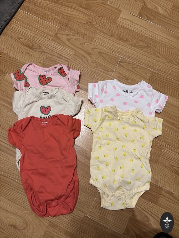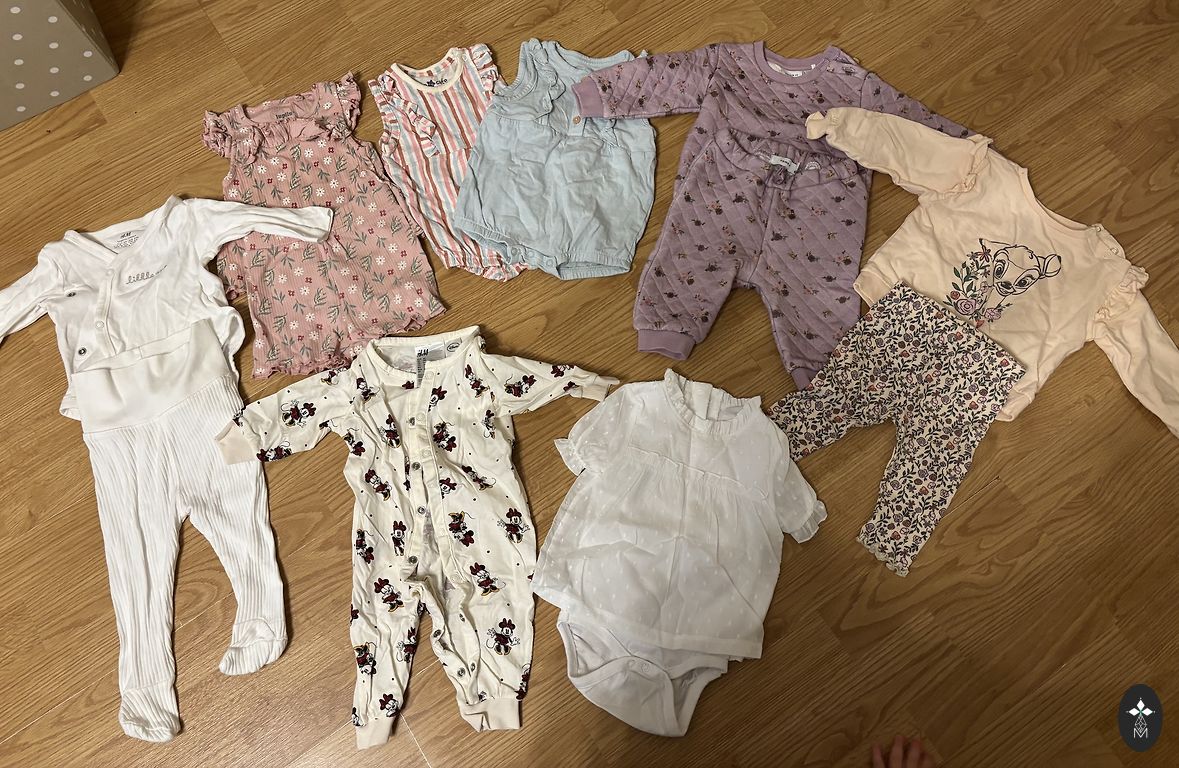 Tikrai kelis kartus dėvėti, trumpi bodžiai George 3-6 mėn., 3 ilgos pižamos H&M 62 dydis, 3 ilgos pižamos Next 68 dydis. Ideali būklė. 3 Next romperiai 68 dydis, 3 I love Eco (Rimi) komplektai 62 dydis, baltos fliso kelnės Coccodrillo 62 dydis, suknelė Coccodrillo 68 dydis, 2 Zara švarkeliai 68 dydis. H&M komplektas 62 dydis, Lupilu 62/68 komplektas, 2 pepco bodžiai, Next komplektas 62 dydis (naudotas), Sinsey komplektas 68 (naudotas), H&M pižama 62 dydis, pepco baltas bodis naujas 68. Rožinė suknelė pepco 74, bet mažesnė ir 3 Sinsey 62 dydis bodžiai (nauji) ir 2 68 dydis pepco (nauji).