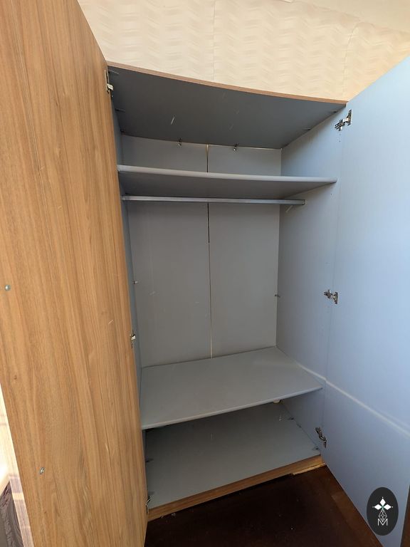Geros būklės, šiek tiek atsilupęs laminatas durų apačioje.