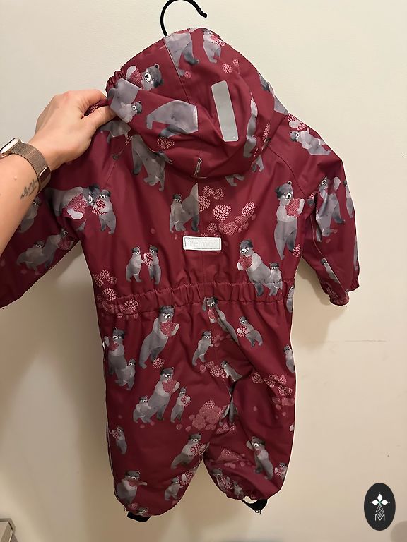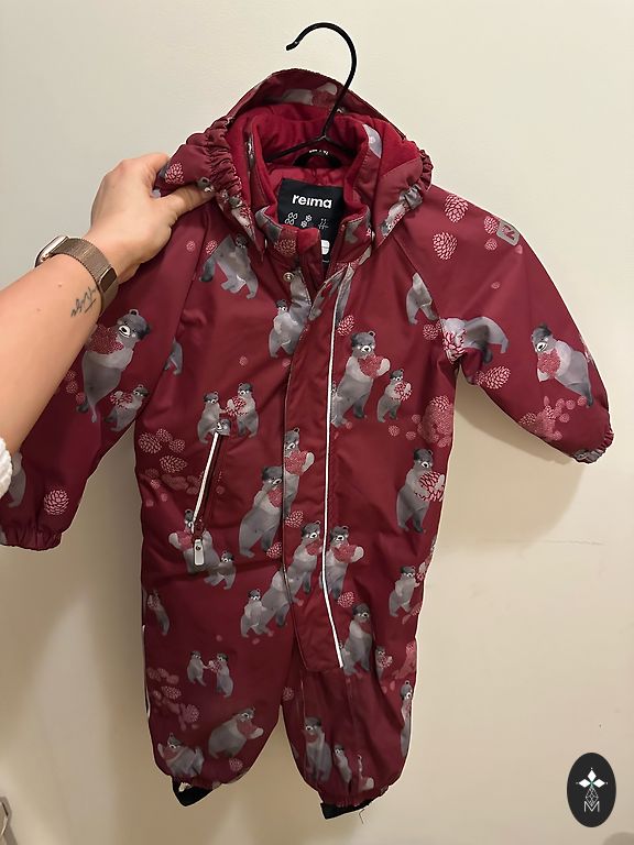 Warm winter overalls with detachable natural fur trim. The overalls indicate size 98, but will fit a smaller child better - length from shoulder to bottom elastic is 72 cm. Gloves are included in the set. Shipping is not included in the price.