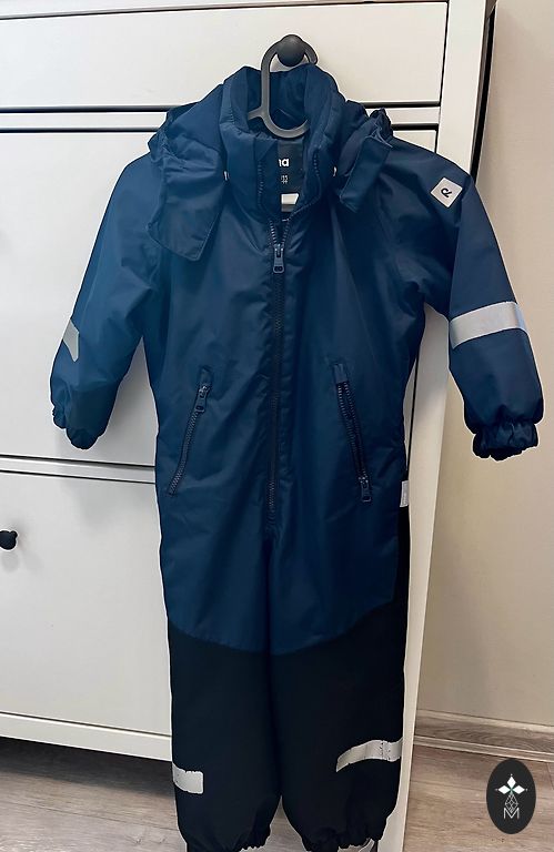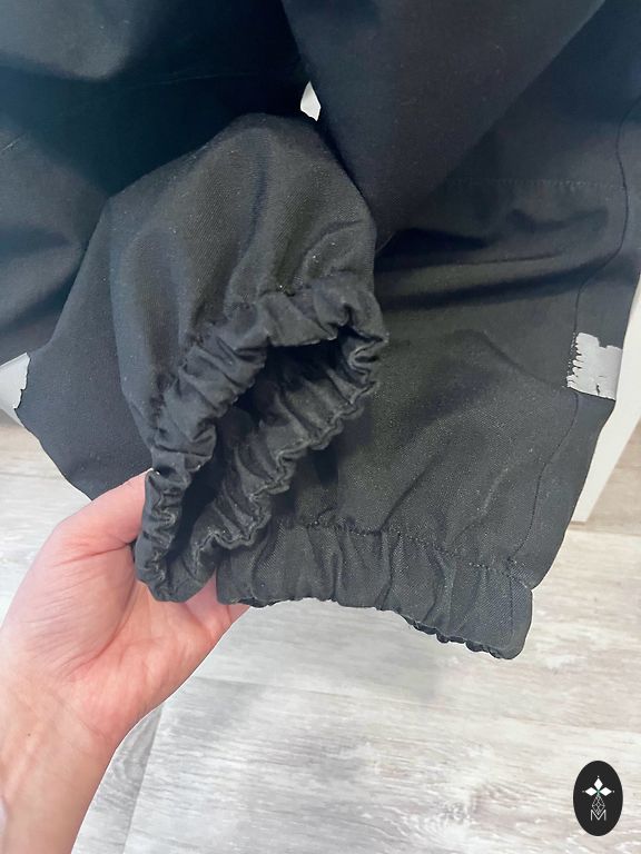 Very thick, warm set. Defects visible in the pictures, on the sleeves. No other defects. Two pairs of pants, sizes 104 and 110. Polyester, thick, with elastic bands at the bottom.