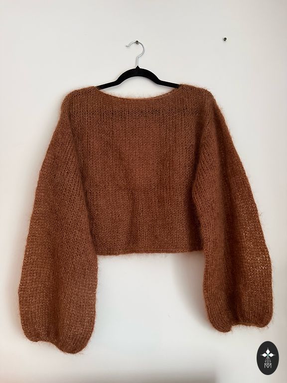 Возможно связать в желаемом вами цвете и размере. В наличии коричневый свитер, немного укороченной длины.