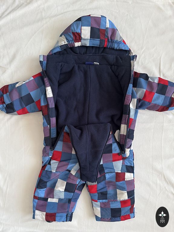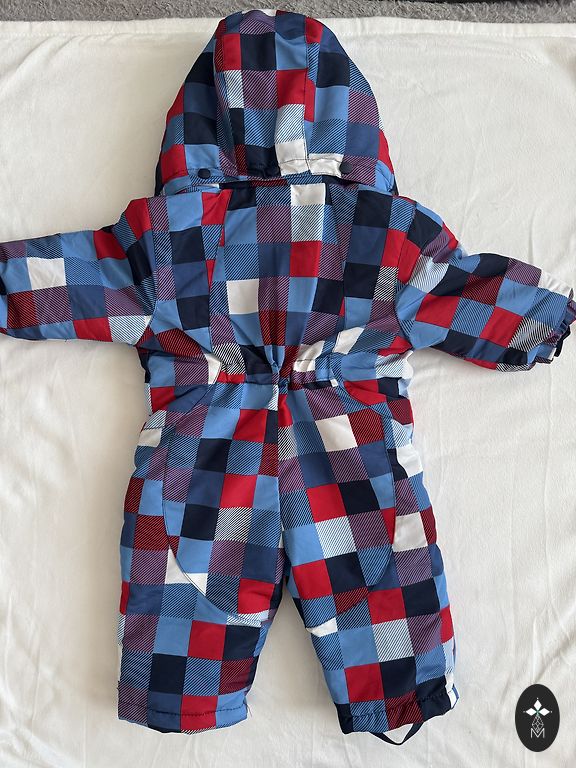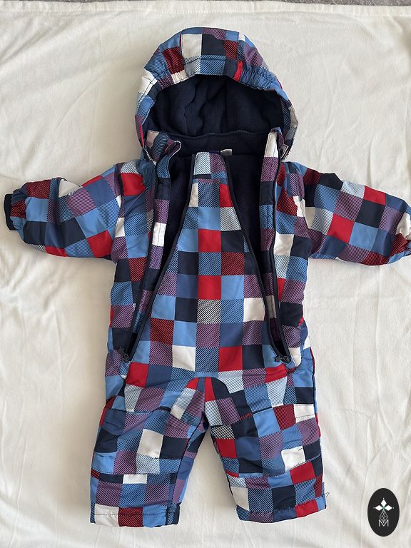 Talvekombinesoon - ainult proovitud. Kuid meie jaoks liiga kitsas, sobib mõnele saledamale poisile. Märgitud 9-12 M, kuid tegelikult sobib suurusele 62/68/74.