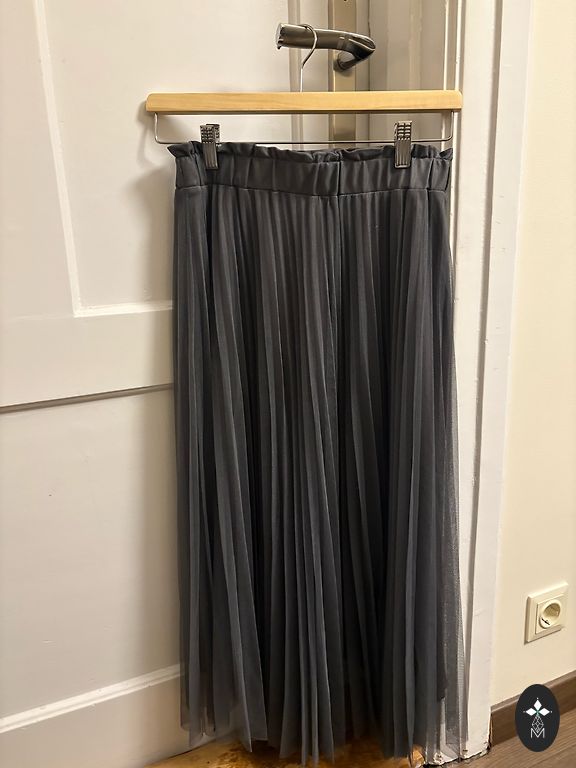 Geros būklės kelnės su aukštu juosmeniu. Kojos plačios, ilgis 3/4. Kojų ilgis nuo juosmens ~86cm. Pristatymas +2€.