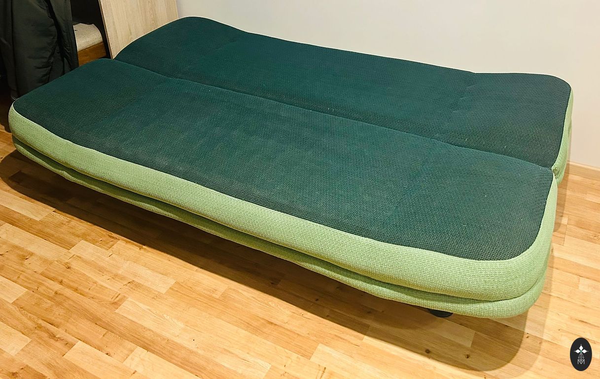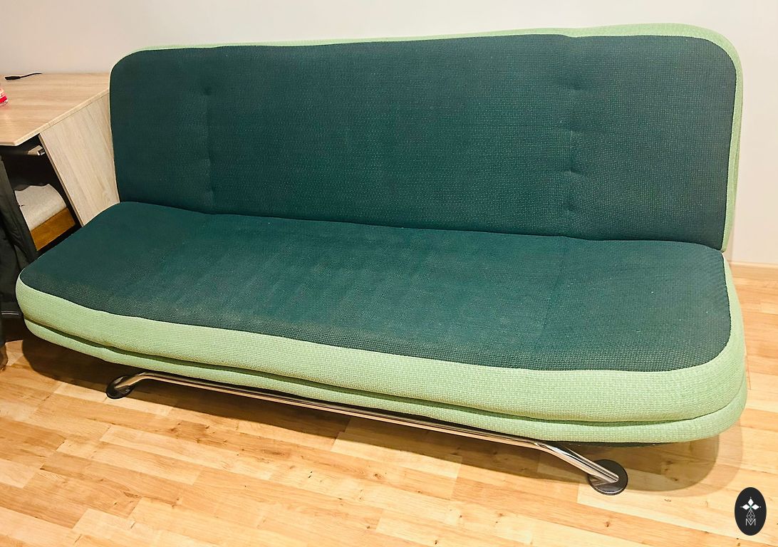 High legs, a robot vacuum cleaner fits under the sofa.