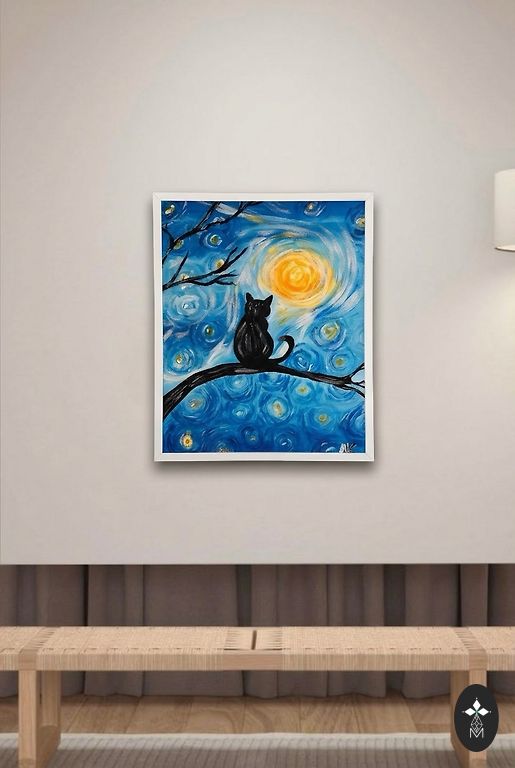 Tai yra mano asmeninė, unikali darbo interpretacija, sukurta viename egzemplioriuje. Paveikslas puikiai papildys modernų ar minimalistinį interjerą, suteikdamas jam elegancijos ir gilumo.