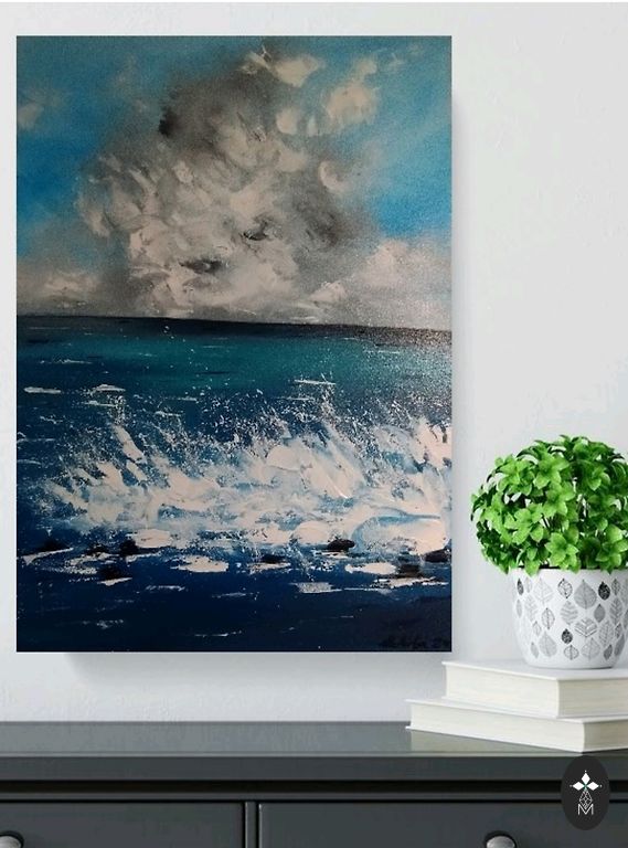An original painting by the author depicting a black cat calmly sitting on a branch and observing the bright moon in the starry, swirling night sky. The blue and yellow colors create a dreamy, magical atmosphere, symbolizing the cat's independence, mystery, and inner peace. This is a unique, one-of-a-kind piece that will perfectly complement a cozy, creative, or modern interior and attract attention with its character and story.