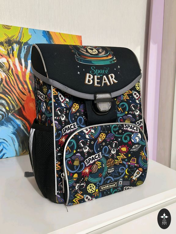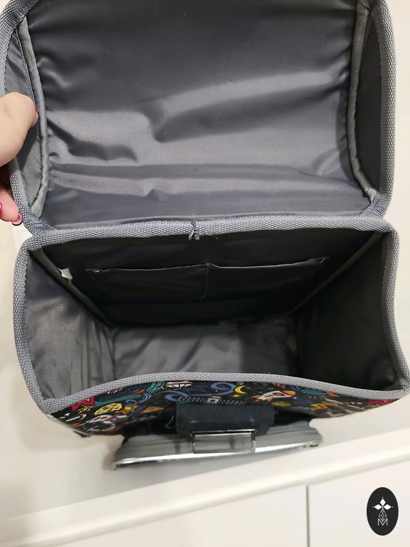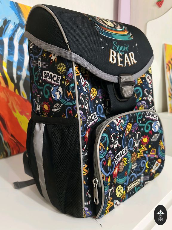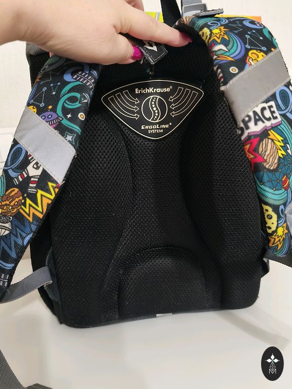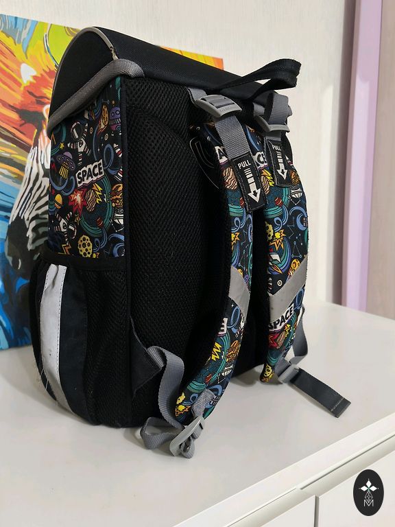 Mokinys turi kuprinę su tvirta nugara.