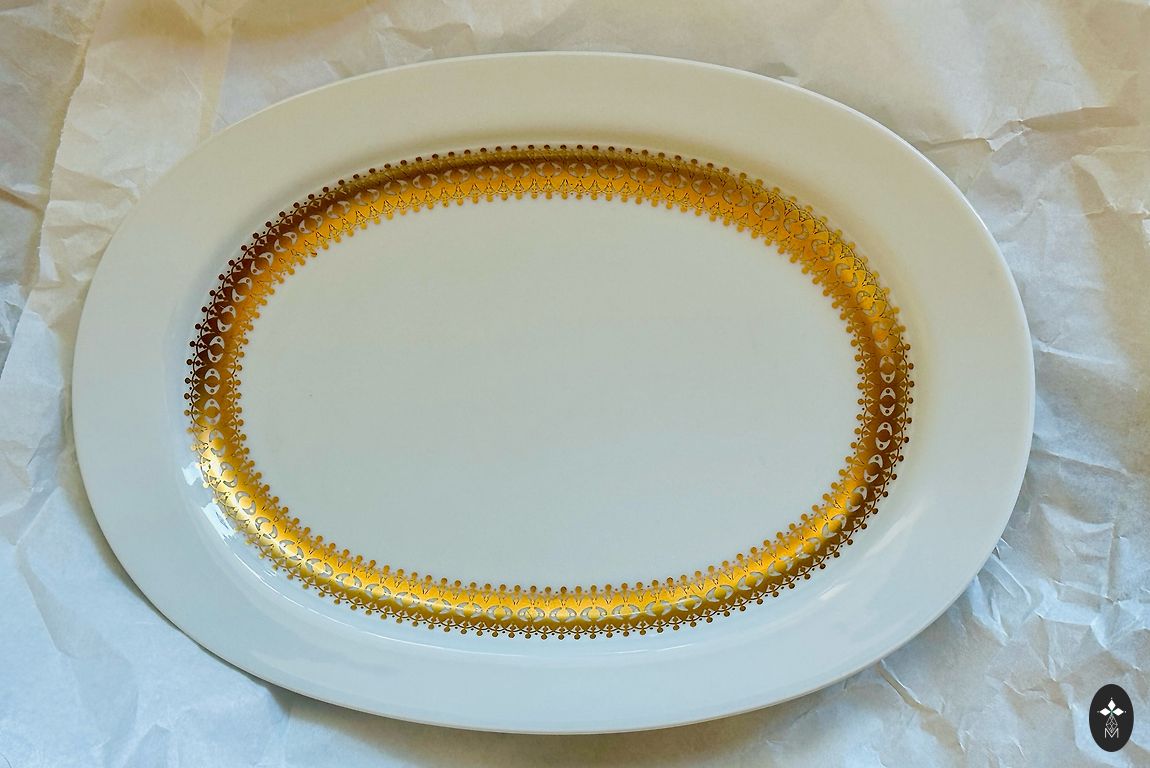 Элегантная винтажная сахарница от легендарной мануфактуры Volkstedt, основанной в 1762 году. Фарфоровая форма с посеребренным покрытием Metallin создаёт эффект благородного серебра, характерный для европейской сервировки середины XX века.