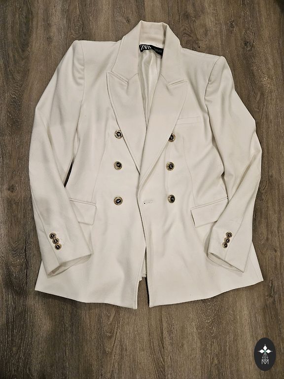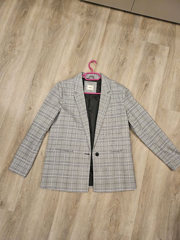 Красивая удлиненная жакетка, указан размер L, но я бы носила как oversize на S. Только примерена, абсолютно новая. На мой рост 167 см закрывает бедра.