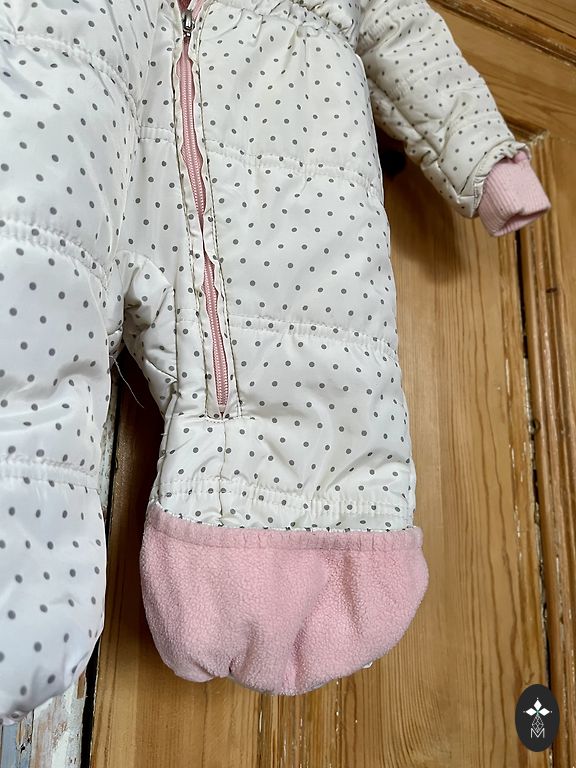 H&M size 98 winter overall (length from shoulder to bottom of the leg ~ 80 cm). Bought new, worn by one child during the winter season. The fabric is moisture-repellent. Defects: the lining is stained in some places, the fabric on the seat and knees is slightly worn (see photo). Buyer covers shipping costs. Located in the center.