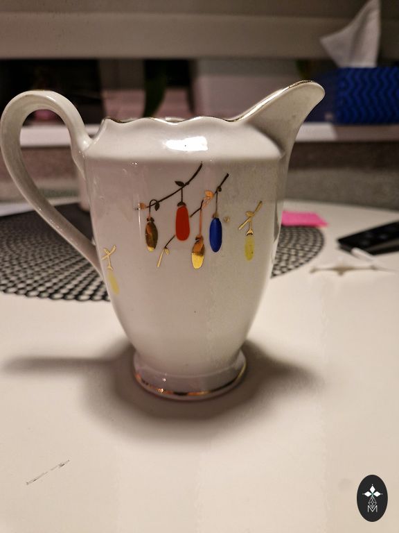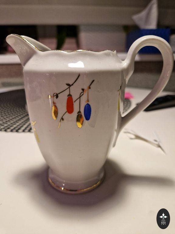 Alustass kauni vioolide dekoliga. Ilma pragudeta, mõlkideta ja templita, kuid vorm vastab Kuznetsovi tehase nõudele. Selle dekoliga ja vormiga on Andelmandeles hiljuti nähtud Kuznetsovi tass. Teisel pildil vastava tassi näide, tassi ei müü.