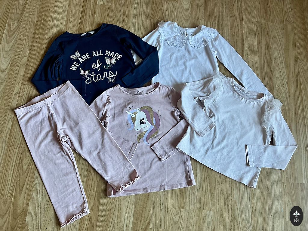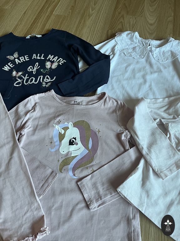 Cena par visu, bet varat izvēlēties un ņemt arī pusi. Krekliņi no H&M un Reserved. Baltajam ar rozā maliņām neliels traipiņš. Garajam rozā džemperim arī ir traipiņš. Virsjakai ir lietošanas pazīmes un defekts- varu nosūtīt papildus bildes.
