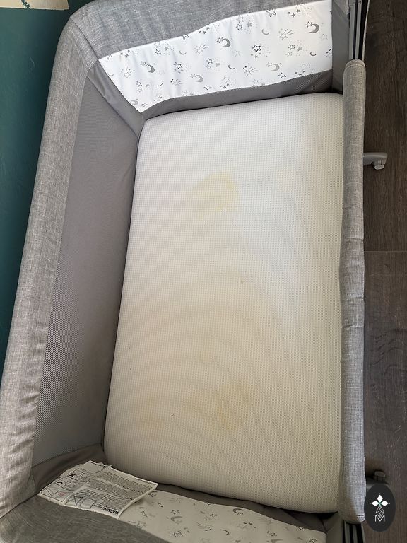 ткани, обеспечивающей отличную вентиляцию, с одной стороны есть отверстие на молнии. В комплекте дорожная сумка для путешествий и хранения. Кроватка уже в собранном состоянии. В комплекте матрас на заказ (стоил 90€) с двумя хлопковыми простынями, в идеальном состоянии. Могу добавить музыкальный мобиль, который виден на фото.