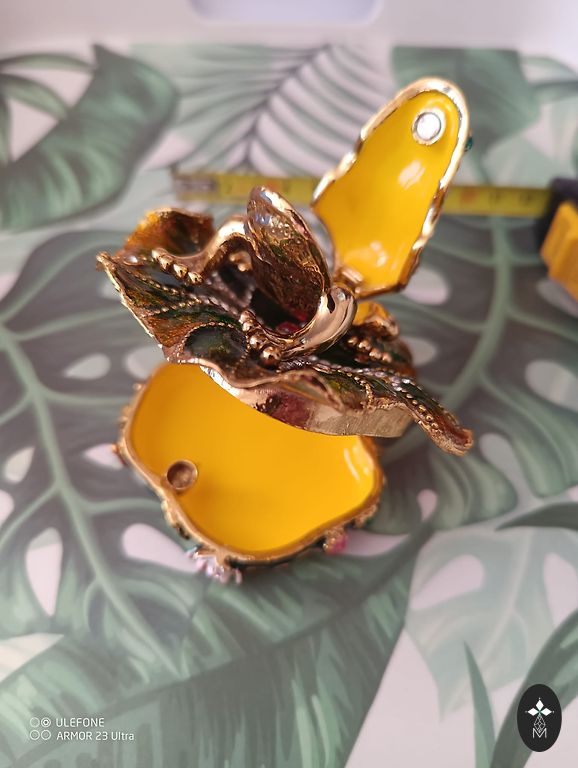 • Sastāv no dzeltenas saulespuķes un dekoratīviem kristālveida pilieniem