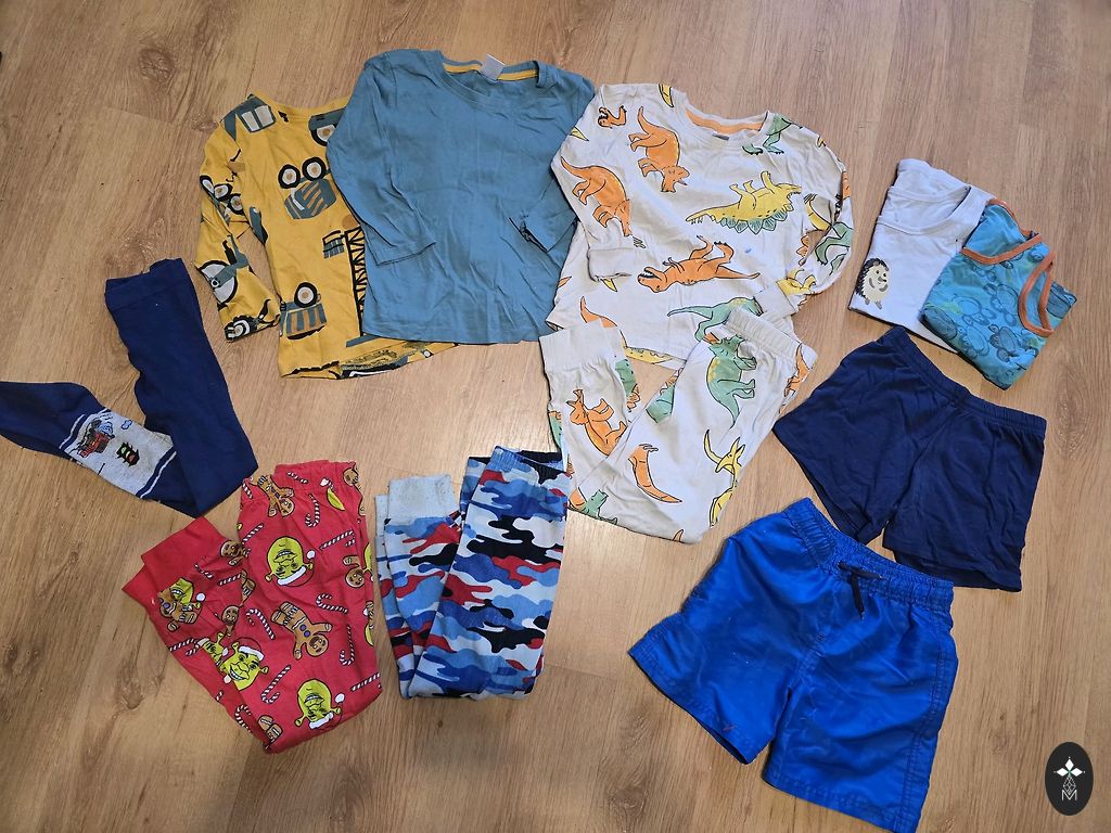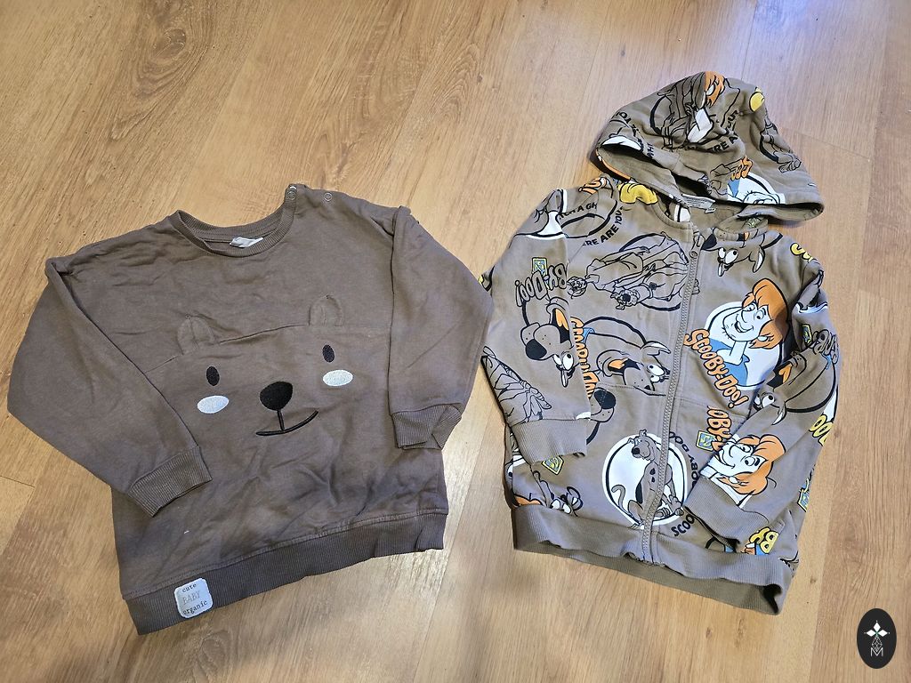 Nii teksad kui ka spordipüksid. On suurused 92/98 ja 98/104. Teksad on kantud vaid paar korda.