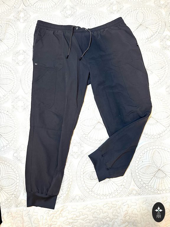 Brand new forms, sent from Aliexpress, never worn. Approximately size 46. One model. The fabric is not thick. One set is black, the other set is red. V-neck design. The pants have side pockets on the thighs, with a taper at the ankle with elastic.
