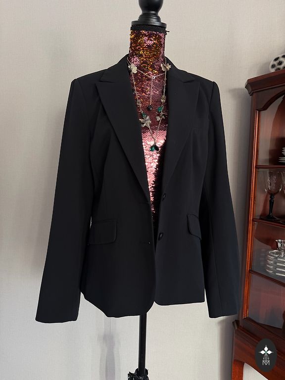 Ülisuur lahe must jakk leopardimustriga varrukatega, klassikaline ja lahe mustade pükstega või kleitide peal.